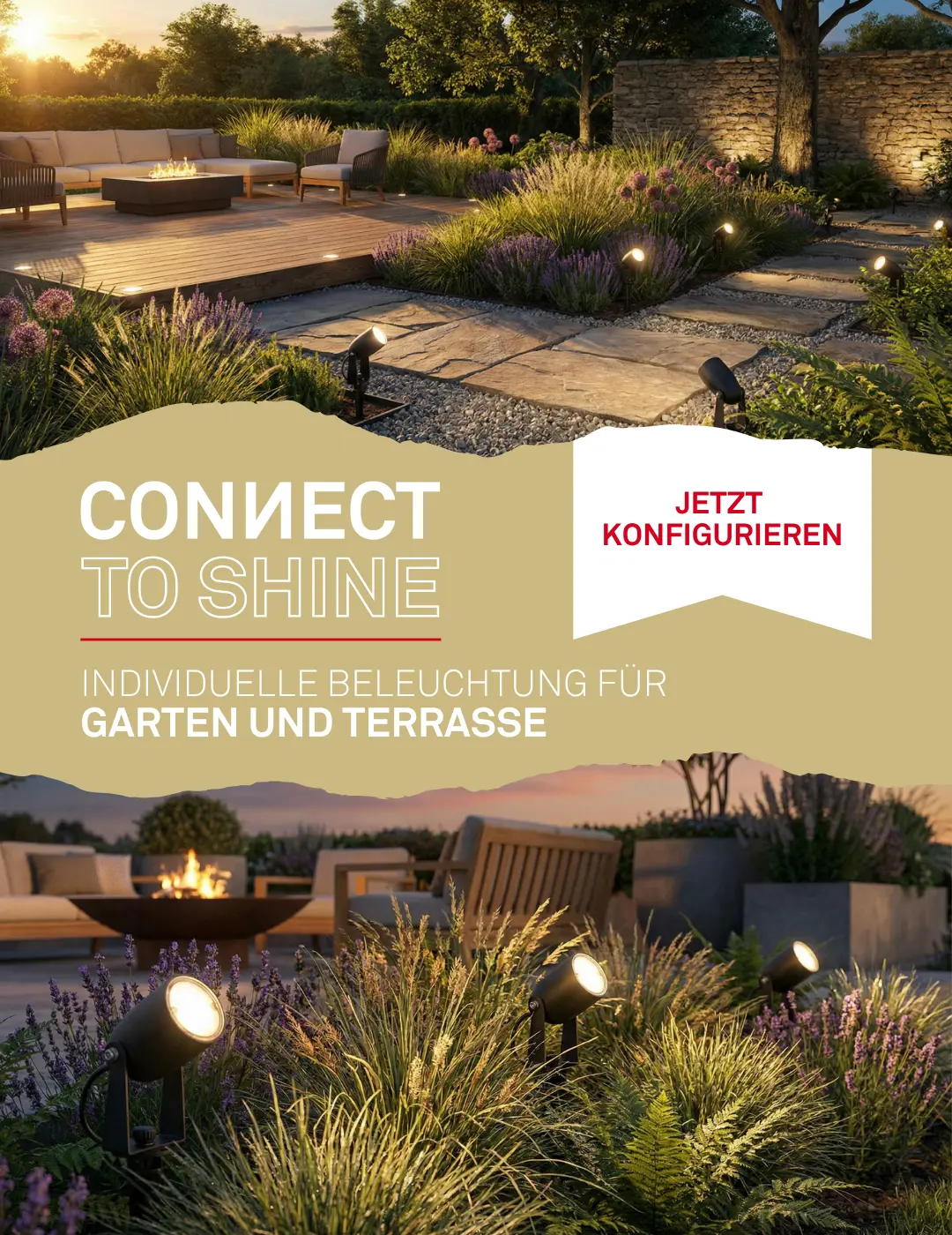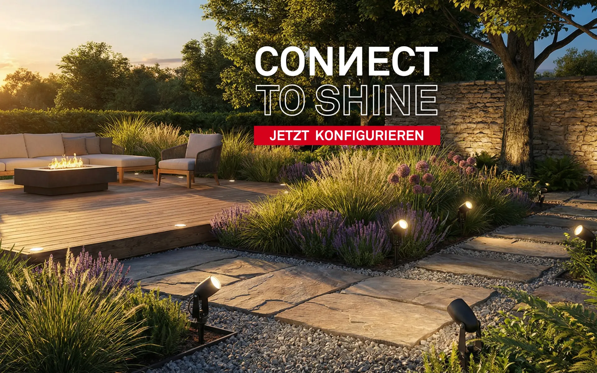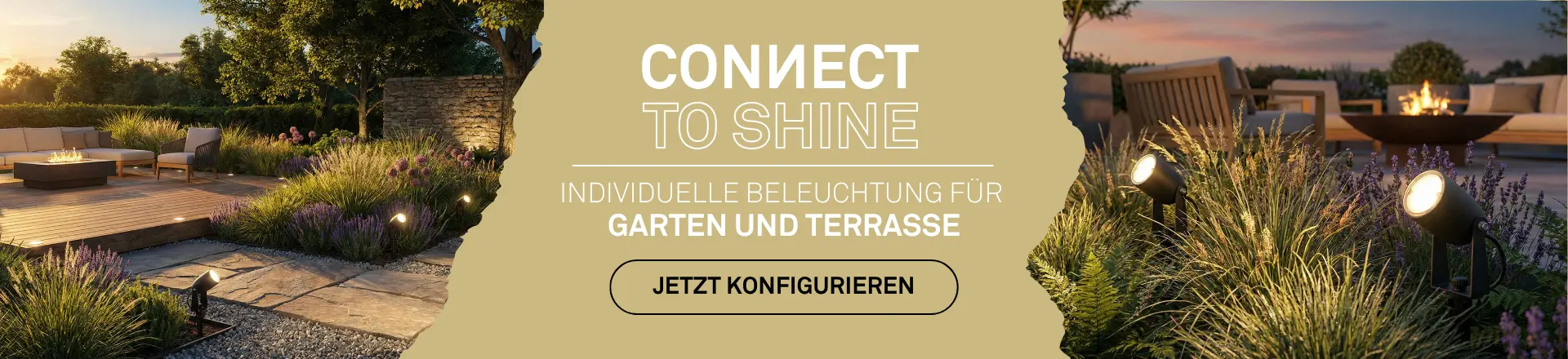 Für den Außenbereich bieten wir eine breite Auswahl an "Außenleuchten". Sie sind funktional und stilvoll. Schaffen Sie mit unserem "CONNECT TO SHINE" 12 Volt Garten Beleuchtungssystem eine einladende Atmosphäre in Ihrem Garten, auf Ihrer Terrasse oder auf dem Balkon. Unsere Außenleuchten sind wetterfest und langlebig. Eine gute Außenbeleuchtung sorgt für Sicherheit und setzt die Akzente in Ihrem Garten.