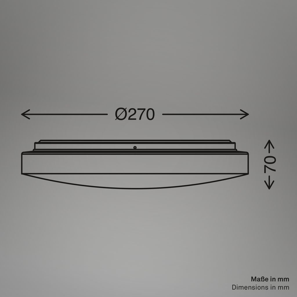 Mit einem Durchmesser von 270mm und einer Höhe von 65mm ist die Kellerlampe kompakt gestaltet und passt optimal in Räume mit niedrigen Decken oder minimalistischen Wohnkonzepten.