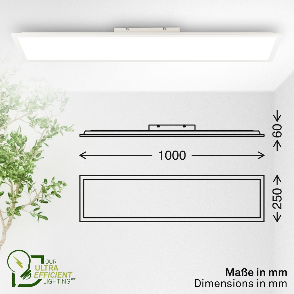Mit Abmessungen von 1.000 x 250 x 60 mm (L x B x H) bietet das Panel eine unauffällige, aber leistungsstarke Beleuchtungslösung, die sich nahtlos in verschiedene Raumkonzepte einfügt.