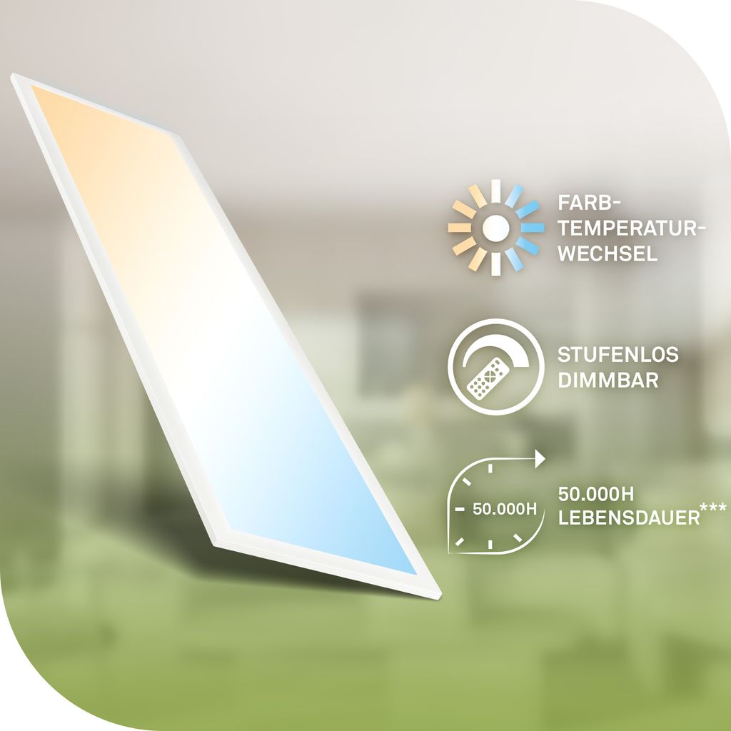 Piatto LED Panel 100x25 cm - 12,6W, 2860lm, mit EEK A Lichtquelle*, Dimmbar, CCT, Weiß