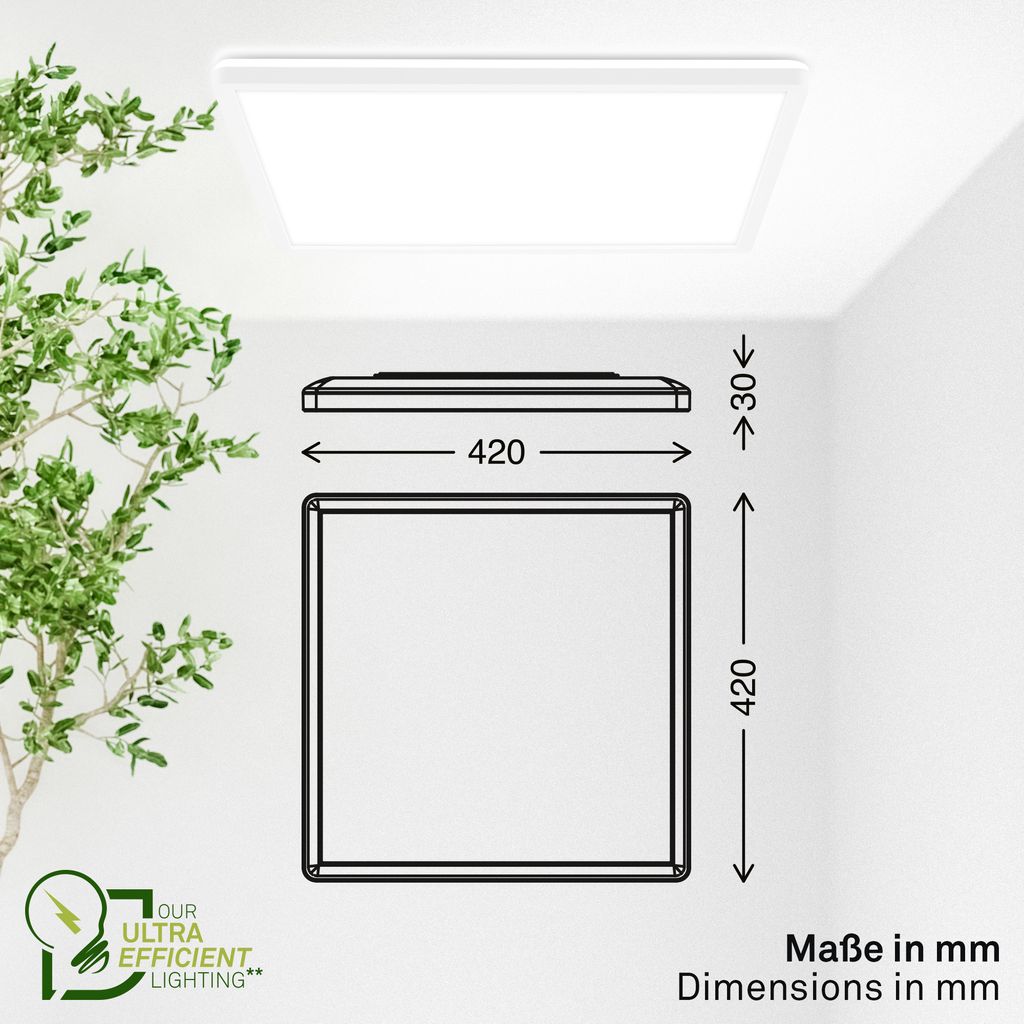 Die Deckenleuchte ist mit einer integrierten LED Lichtquelle* ausgestattet, die der Energieeffizienzklasse A zugeordnet ist. Die 14W LED-Platine liefert eine Lichtleistung von 3.000 Lumen bei einer Farbtemperatur von 4000K und sorgt für eine effiziente Ausleuchtung.
