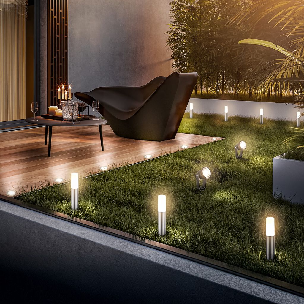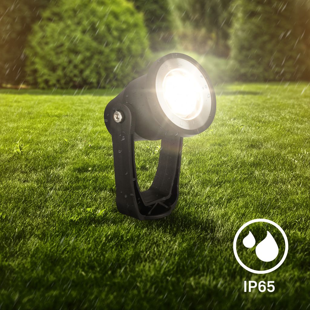 The LED spotlight is equipped with 1 W power and produces a brightness of 100 lumens. With a light colour of 3,000 K warm white, it is well suited for calm, atmospheric lighting in outdoor areas.