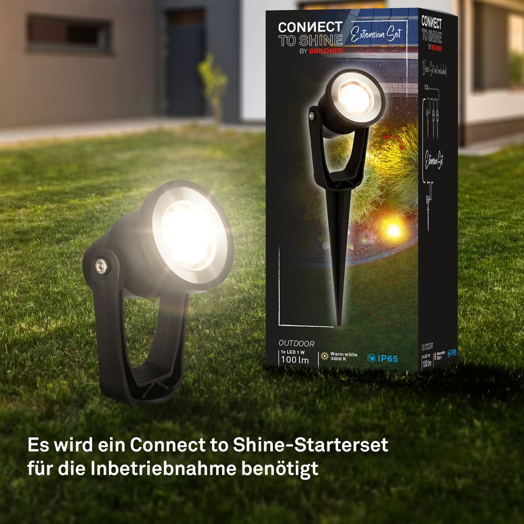 This garden light serves as an extension to the starter set 3918035 and can be combined with additional spotlights from our Connect to Shine series. Please note that a starter set is required for operation.