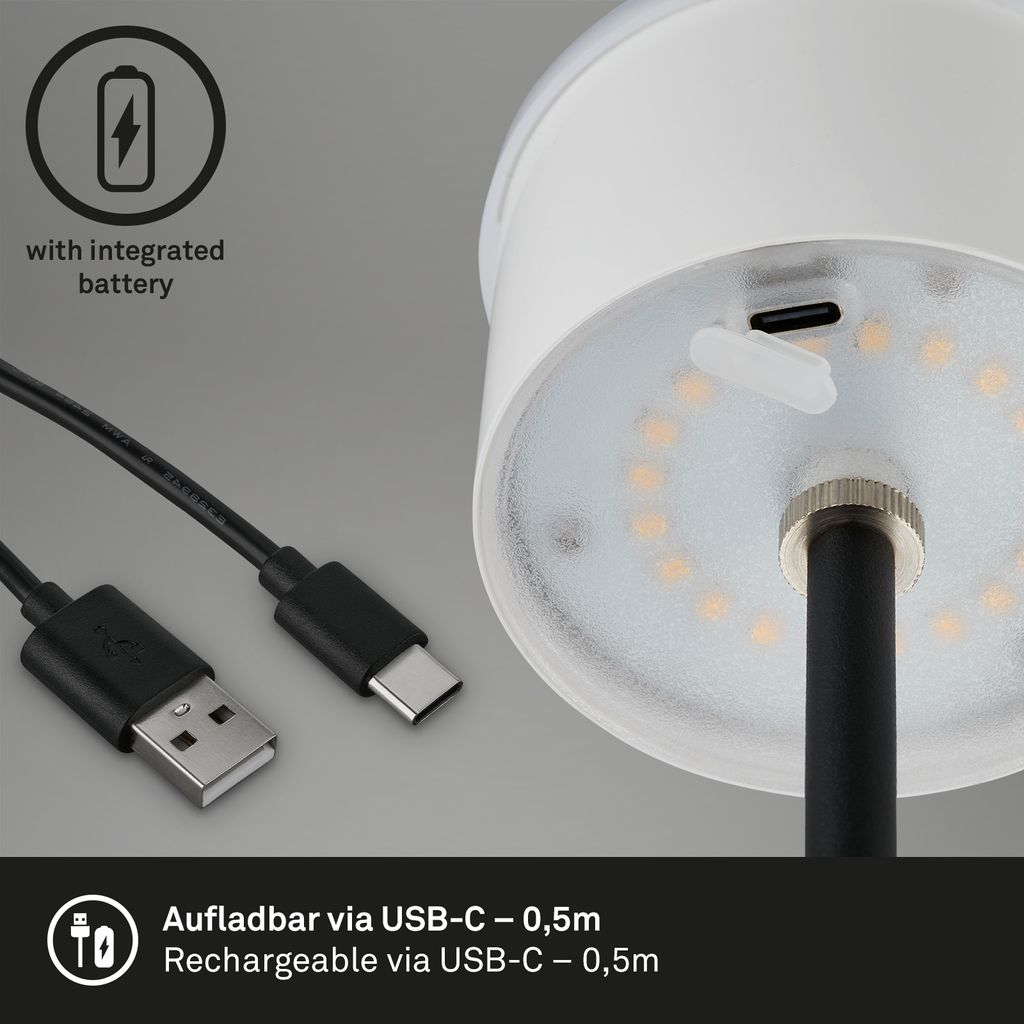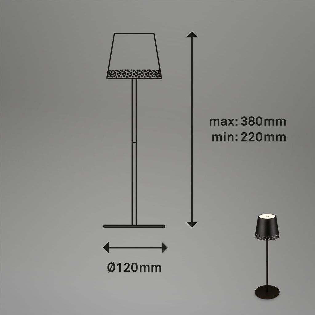 Produkteigenschaften "LED Lampada da tavolo a batteria 38 cm 2,6W 280lm nero"